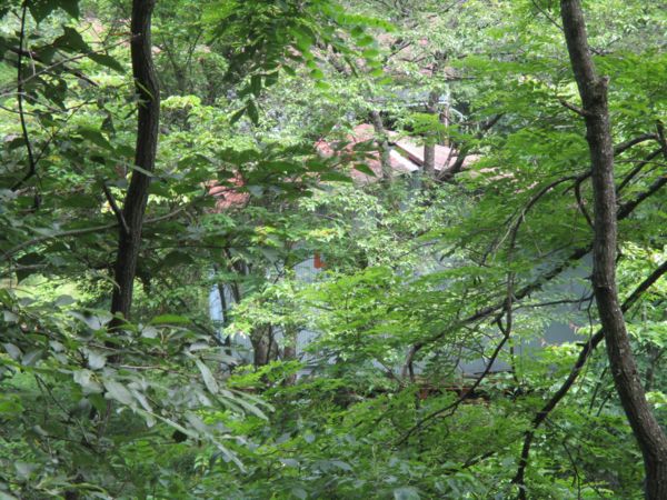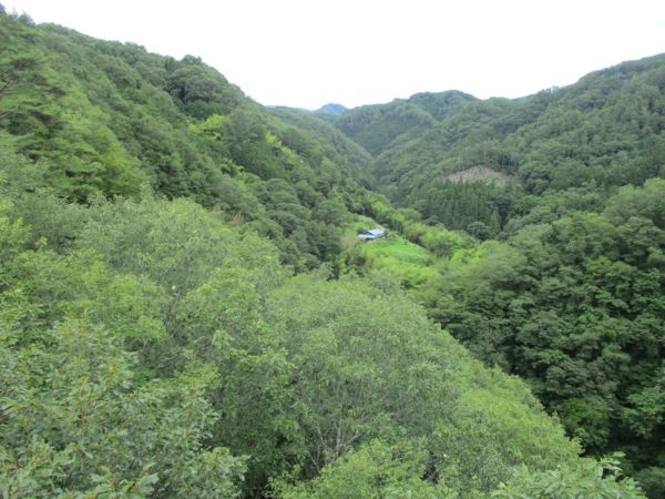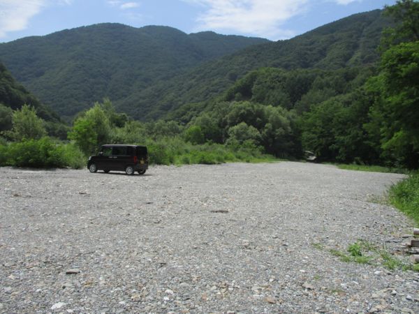 途中、川側に赤い屋根が見えたのでUターンして河原へ降りる。(35°46'57.8"N 138°08'14.8"E)