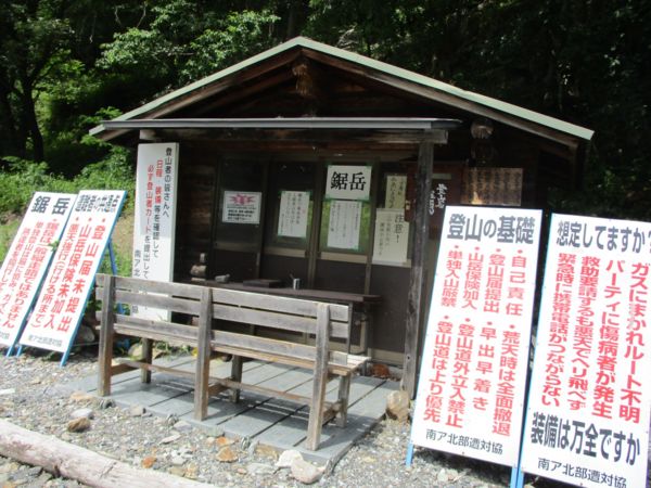 鋸岳登山の起点になっているらしいが、注意書きがものものしい。