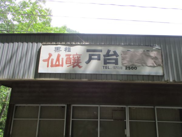 元の林道にもどってすぐにある、かつての茶屋。電話番号のケタ数の多いこと。