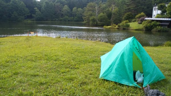 ところがよくよく地図を眺めていると、その先、入笠牧場を横切った向こうに千代田湖という湖(人造湖らしい)があり、湖畔にはキャンプ場があることを発見してしまった。それならばと1泊キャンプツーリングで計画を立て、実行は7月末の電力休暇とした。