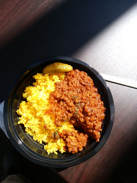 昼食は美殿町のさなえ食堂、ドライカレー大盛600円。やや辛いが美味。こんどは普通のカレーを食べてみよう。