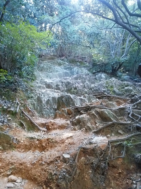 途中の岩場。ここは手も使って登る。登りはいいけど、下りだと転げ落ちそうで嫌だなぁ。