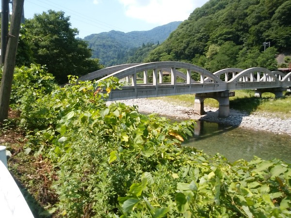 国道148へ出たところで、いい味のコンクリート橋に出くわす。土木遺産に選出されている姫川橋だ。