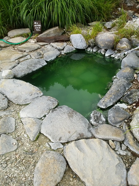 さて、蓮華温泉の湯は四つ。いずれの湯も、一周30分ほどの「登山道のわきに湧いているので丸見え」である。とはいえそこはそれ、こちらはもういい歳をしたオッサン、矢でも鉄砲でもどんとこい、である。