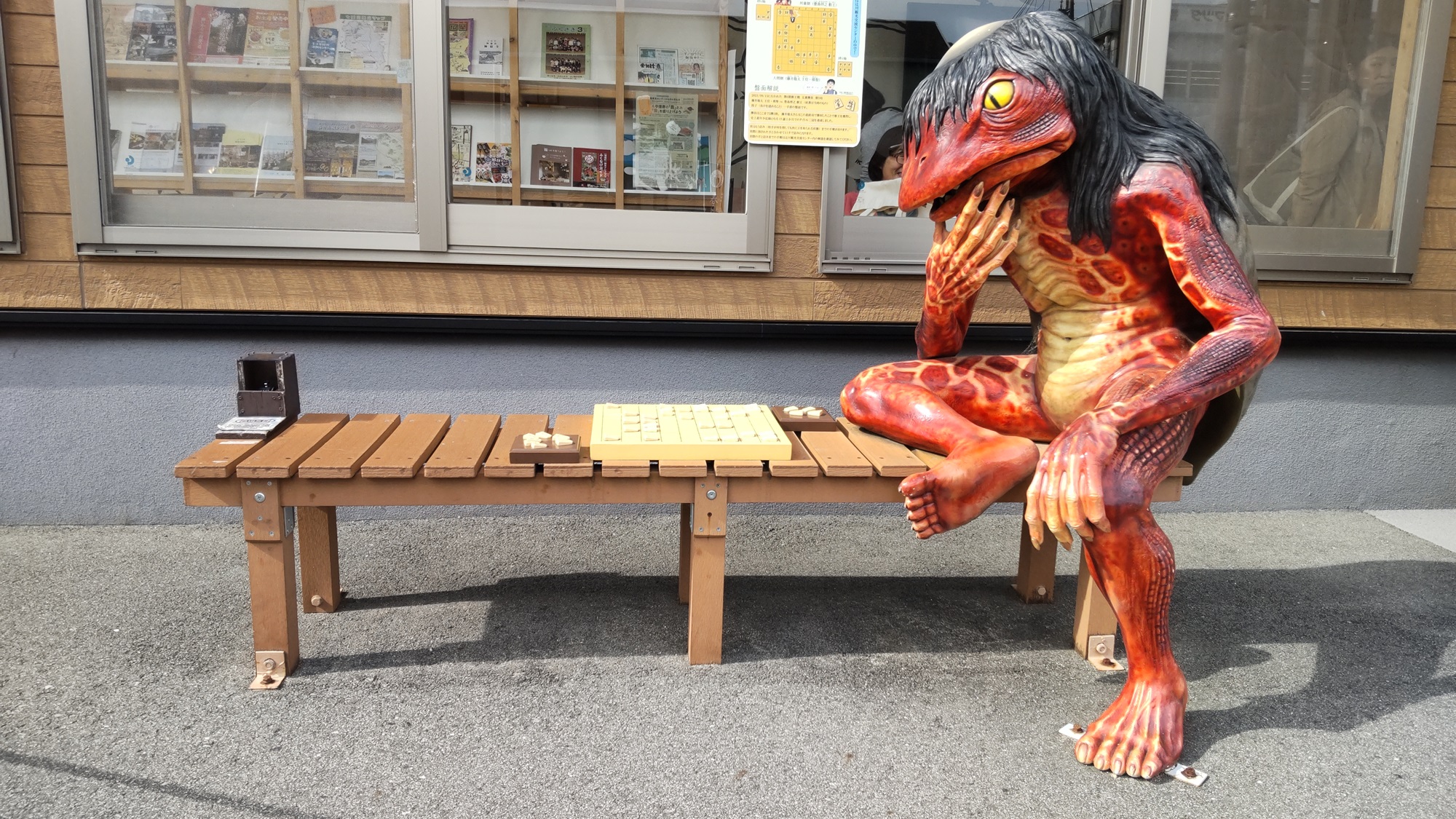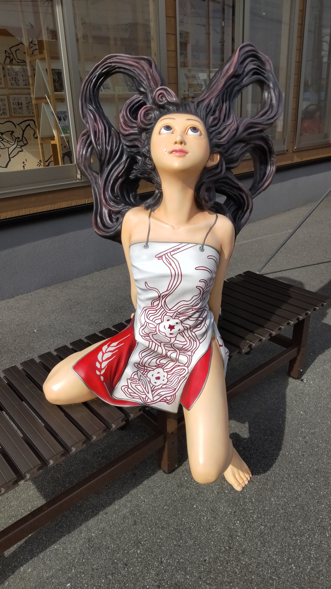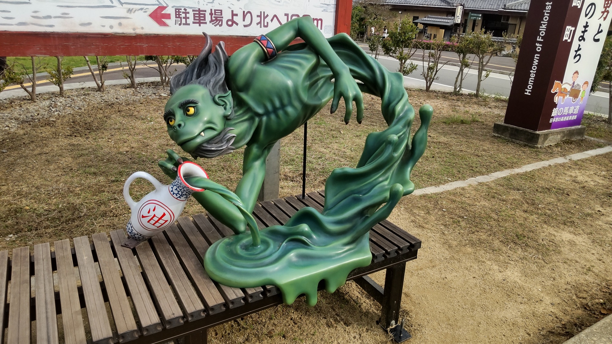 駐車場は混んでいた(車は停める余地がない)が、バイクなら隅っこに適当。で、Uターンしようとしたら、やってしまった。