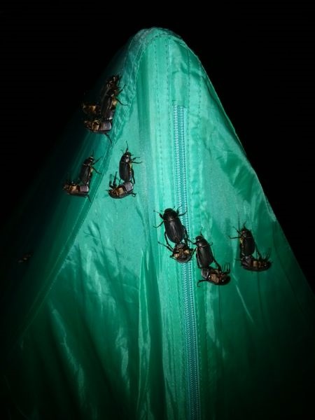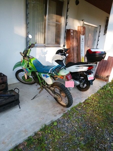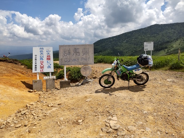 この先、延々とダートが続く。勾配も少なく、大して荒れてもいず、走りやすい。昨日の湯沢林道とは大違い。こっちはお勧めである。峠の手前で昆虫採集中の若者と出会った。しばし話をしていると、割合と大型の甲虫が採れるらしい。今回は採集道具持参の旅ではないので、彼らの採集をしばし見学。