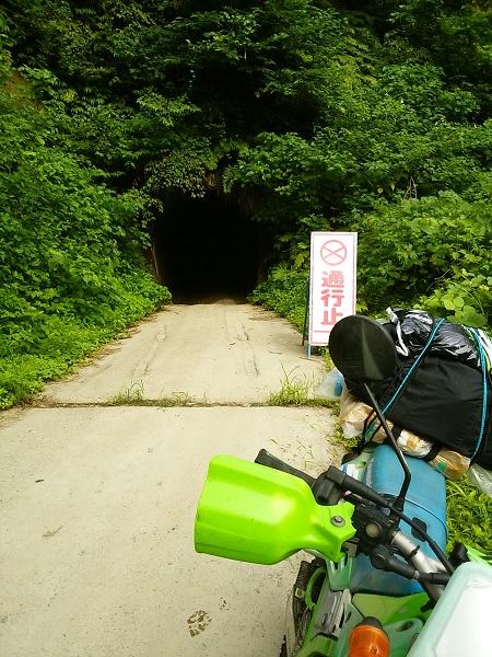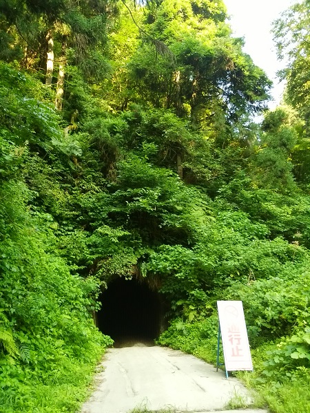 そして、峠に到達。野営場からここまで1時間。乙見峠にある乙見隧道の新潟県側である。