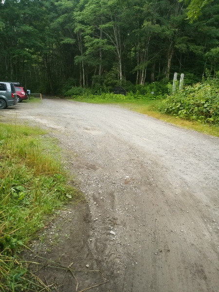 笹ヶ峰野営場から乙見山峠を越えて西側の小谷村、雨飾温泉へ抜ける道の、とば口である。道は少し行くとフラットダートになった。そしてここが、黒沢を越えたところにある分岐である。