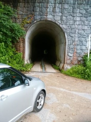 だいぶ端折って(だって、道、狭いんだもん)、刀利ダムの天端を越えて、刀利隧道の北側。車幅は1.5車線くらい、短いし、対向車が来なければ問題なし。