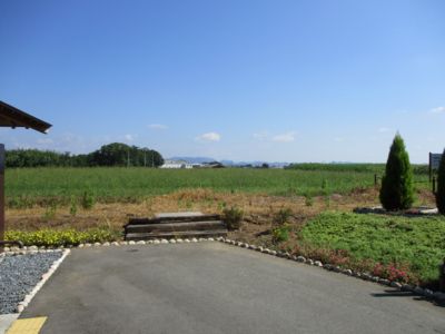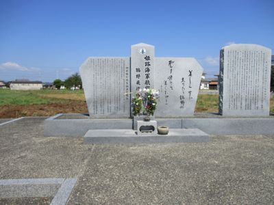 鶉野飛行場は、googleマップで見る限り40°-220°方向を向いている。滑走路跡そのものは北端の紫電改倉庫を除いて立ち入り禁止、西側に滑走路に沿った長い直線道路があり、その中ほどに記念碑があった。