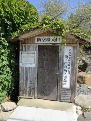 駅から航空隊正門へ向かう道は右手が高くなっていて、所々に防空壕が口を開けている。駅から隊へ帰る途中、退避の必要が生じたときに使ったのだそうだ。素掘りのものとコンクリート製のものが混在している。