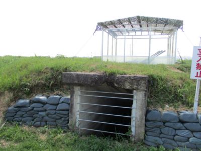 防空壕を一つ過ぎた後、民家の前にある地下戦闘指揮所跡。ここも中の見学は事前予約制で、しっかり施錠してあった。