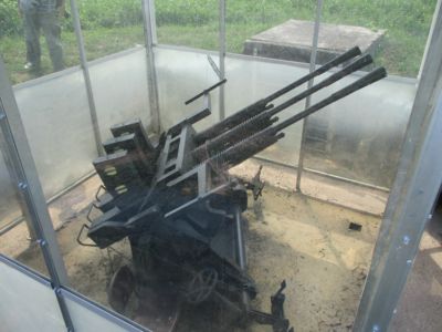 資料館を離れて北条町駅へ向かう途中にあった対空砲陣地跡。展示してあるのは九六式二十五粍対空機銃の三連装、勿論レプリカである。