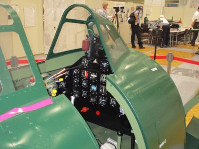 次は最後の目的地、北条町駅前のアスティアかさいへ向かう。アスティアかさいには加西市のスペースもあり、そこで紫電改のコックピットを展示しているのである(勿論レプリカ)。この日はプレスリリースの日であったようで、予定時刻よりしばし待たされた後、入場。コックピットは、しばらくここで展示された後、機体と同じ紫電改倉庫での展示となるようだ。