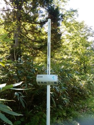 本来の目的は峠のすぐ先で分岐している県道34号なのだが、ひとまず北へ。所々に現れる標識は曲がっていたり無かったり。全て冬季の積雪によるものだろう。