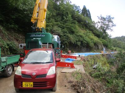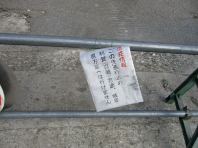 ゲートから更に東、岐阜県側へ進み、とうとう午前中の工事個所へ到達。やはり親父に睨まれた。朝のバイクだと、気づいたかな?ここに戻ってくるまで3時間40分! 時刻は既に15時である。