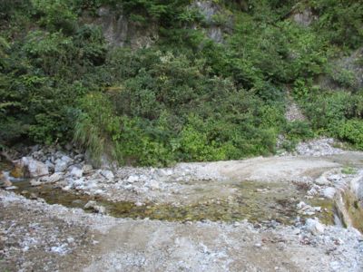 Uターンして三叉路へ戻り、更に県道34号目指して降りていく。途中にあった洗い越し。
