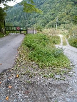 富山と岐阜のちょうど県境のところ、ゲートのあるところで東側に抜けるダートがあったので、行ってみた。最初の方は路肩の両側から草が覆いかぶさり、軽トラでも厳しいか?という状態だったが、しばらく行くとややましに。でも、ずっとダート。写真は奥が岐阜県側、問題のダートはゲートの手前、左側から入っていく。その下の写真は入口辺りのダート。