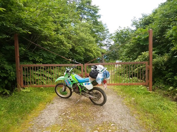 KDXなんていつもなら軽々と持ち上がるのだが、満載の荷物(しかも重心から遠い)が意外と重い、持ち上がらない。荷物を卸すしかないかなぁと考えていると、「私もセローに乗るんです」というご婦人が起こすのを手伝ってくれました。その節は、ありがとうございました。次回お会いしたら、お酒奢ります。