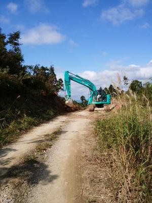 林道の方は、途中にある電波中継所を過ぎてしばらく行ったところ、林道のほぼ半ばで工事中、通行止め(36.34637, 137.00533)。ショベルカーの人に追い返されてしまった。たいていは優しく通してくれるのだが。