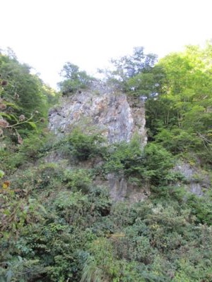 帰り道、粥川の林道から分岐するダートを見つけたので突入。そこで見つけた神々しい岩。
