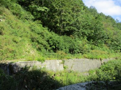 止む無く、来た道を戻る。ダムを西へ渡り、そのまま、廃道の中を進んでいく。もういい時間だし、熊が怖い。
