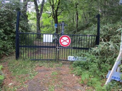 県境のゲートを富山県側から岐阜県側、岐阜県側から富山県側を見たもの。ゲートには鍵がかかっているので、車は通れない。